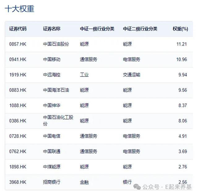 指数前十大成分股,持仓合计占比超70%,其中主要以三大运营商和三桶油为主。