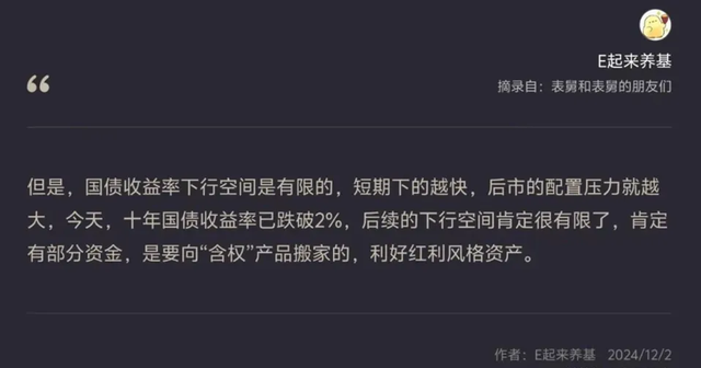 22年、23年买红利,咱买的是能源(三桶油+两座煤矿)+三大运营商。去年至今买红利,买的是银行+三大运营商,买的是带有垄断经营性质的国央企。这些才是“超额收益”的来源,但前提是要踩准节奏。